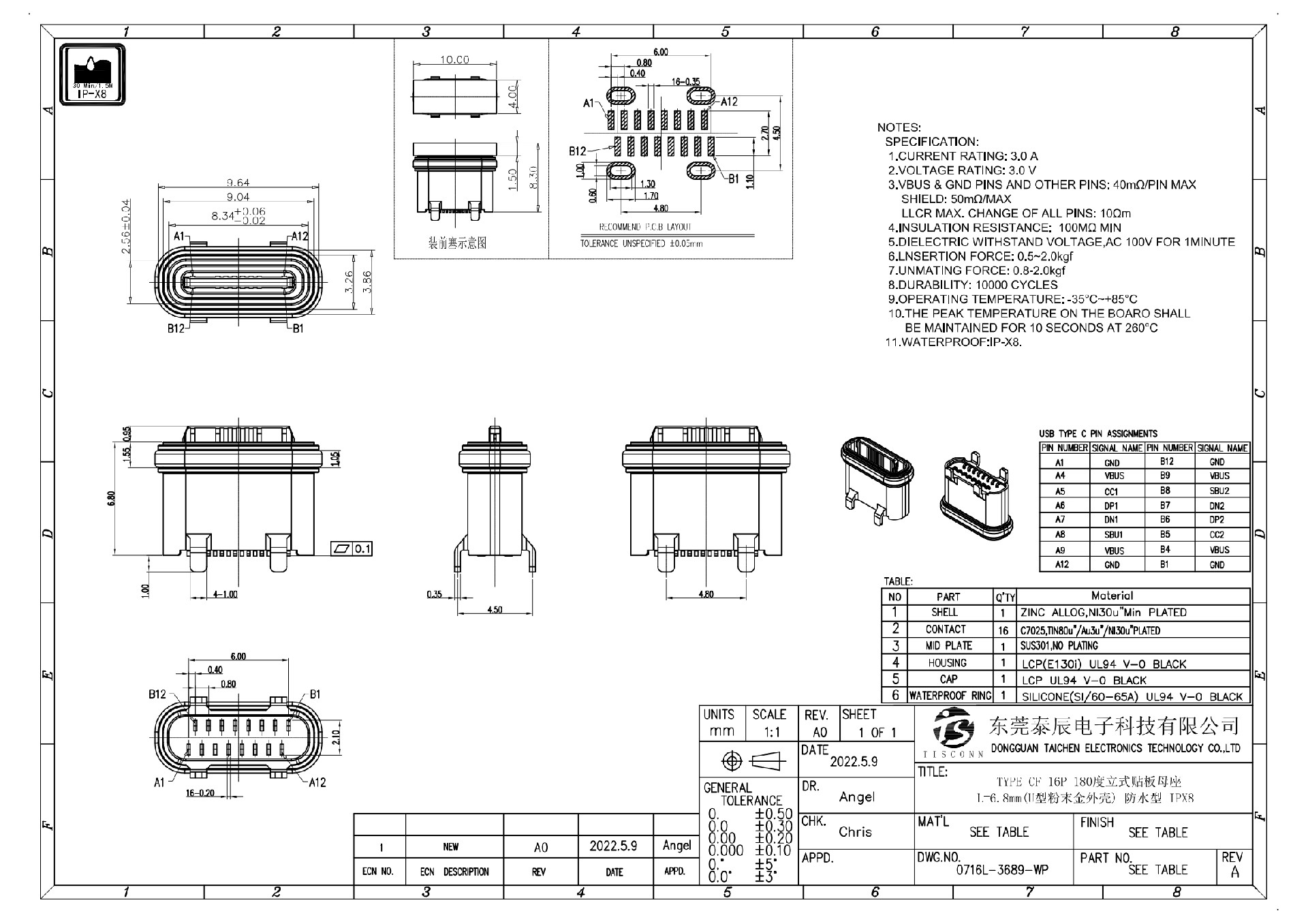 泰辰连接器厂家生产TYPE C防水连接器广泛应用于手机、充电宝、音箱、蓝牙耳机、MP4、数据线、摄像头、行车记录仪、计算机电脑、PDA、数码相机、数码摄像机和便携数字播放器等。