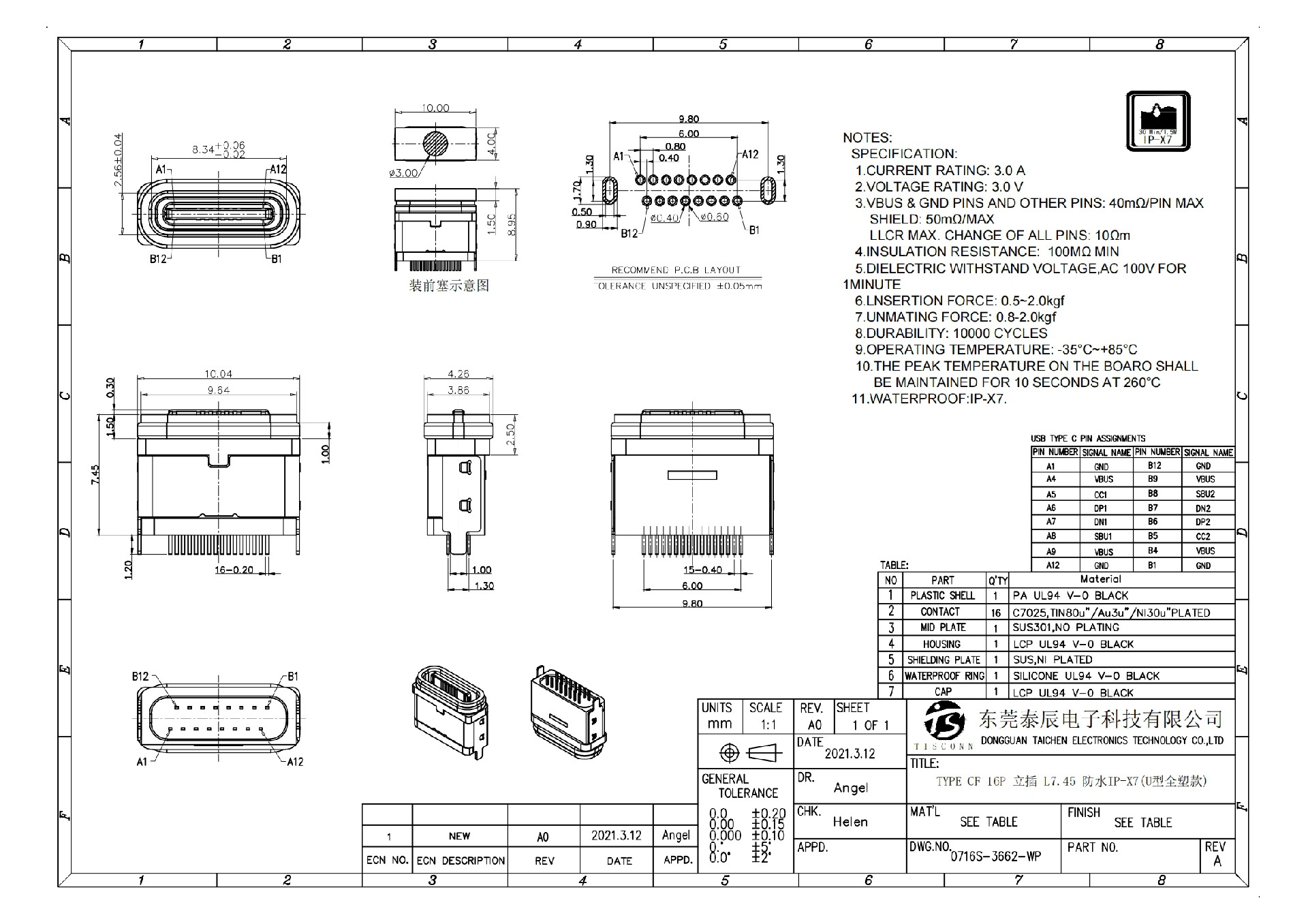 泰辰连接器厂家生产TYPE C防水连接器广泛应用于手机、充电宝、音箱、蓝牙耳机、MP4、数据线、摄像头、行车记录仪、计算机电脑、PDA、数码相机、数码摄像机和便携数字播放器等。