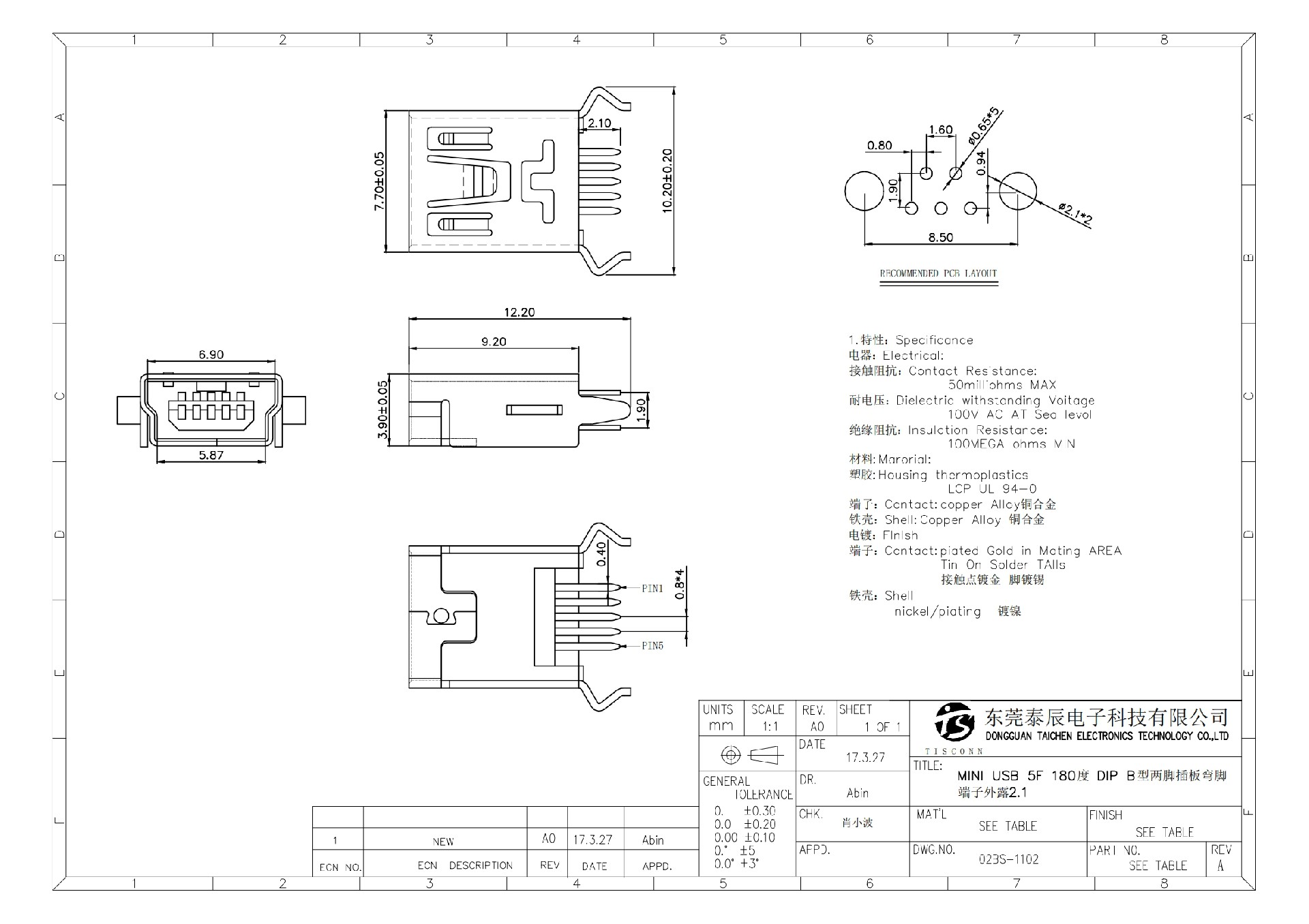 mini usb连接器